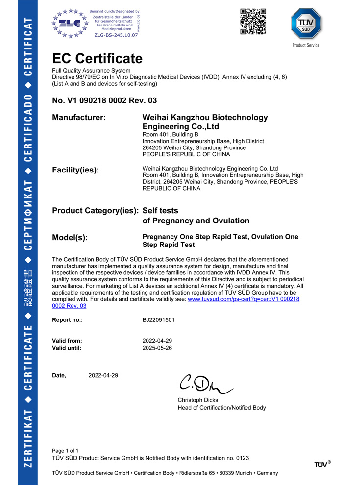 ? ? ?威海康州生物工程有限公司成立于2013年,公司坐落于風(fēng)景秀麗的海濱小城——威海市。康州生物是集研發(fā)、生產(chǎn)和銷售于一體的生物科技公司,與威海哈爾濱工業(yè)大學(xué)合作研發(fā)團(tuán)隊(duì),擁有先進(jìn)的科研基地及生產(chǎn)基地。主要從事快速診斷檢測(cè)產(chǎn)品的研發(fā)、生產(chǎn)、銷售。產(chǎn)品涵蓋:生育檢測(cè)、藥物濫用檢測(cè)、農(nóng)藥殘留檢測(cè)以及其他臨床診斷檢測(cè)等。公司自主研發(fā)生產(chǎn)得早早孕試紙,排卵檢測(cè)試紙,毒品檢測(cè)及疾病檢測(cè)等醫(yī)用產(chǎn)品,經(jīng)過歐盟認(rèn)證,產(chǎn)品質(zhì)量穩(wěn)定,值得信賴。